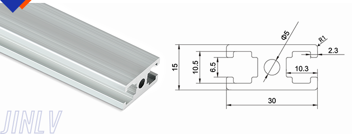 15 means the section size is 15mm, Jinlv offers 1530,1560,1590 three kinds of profile with 6mm slot.