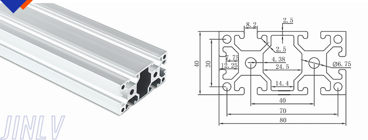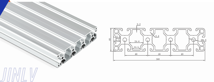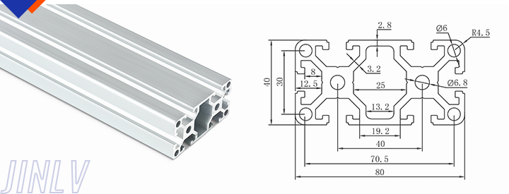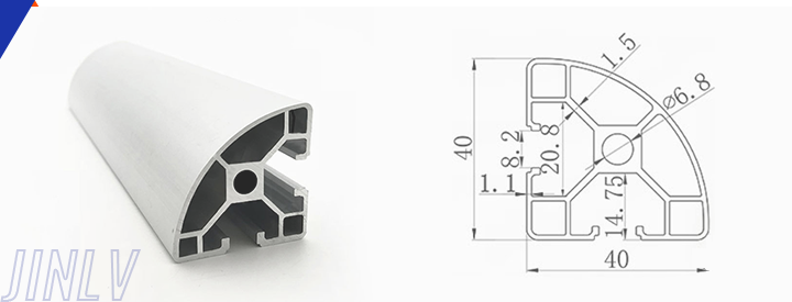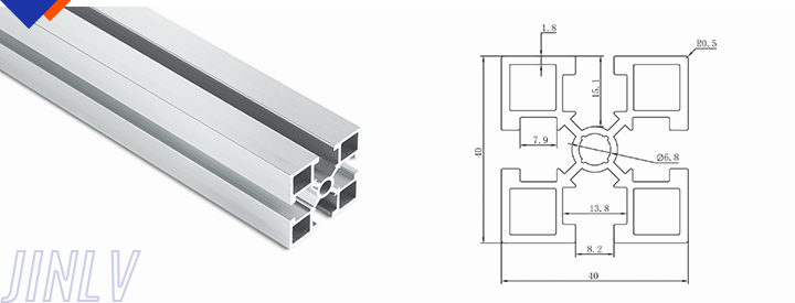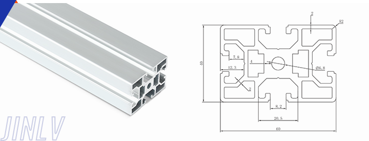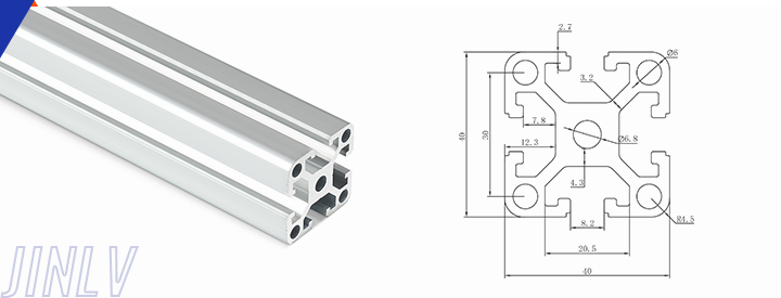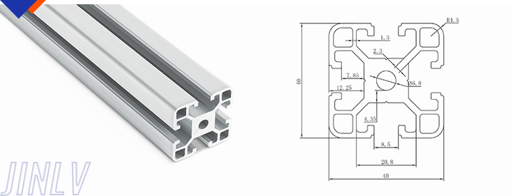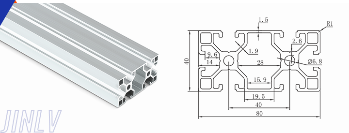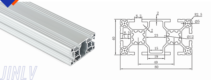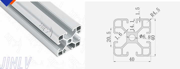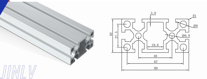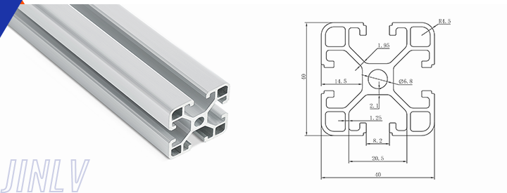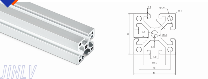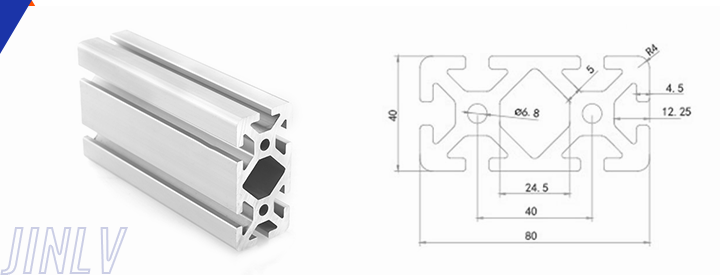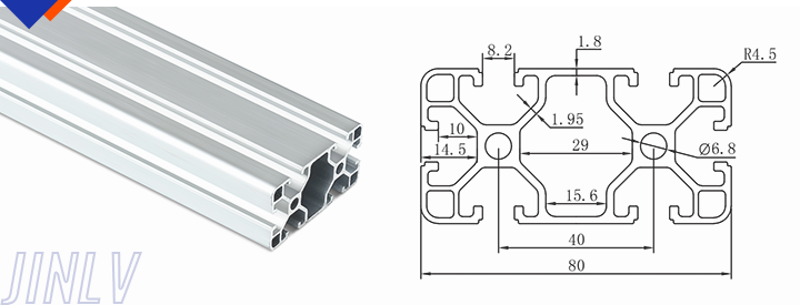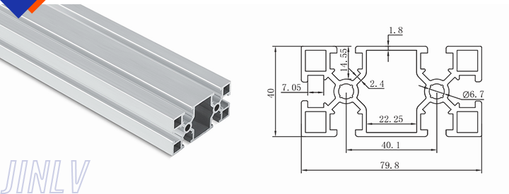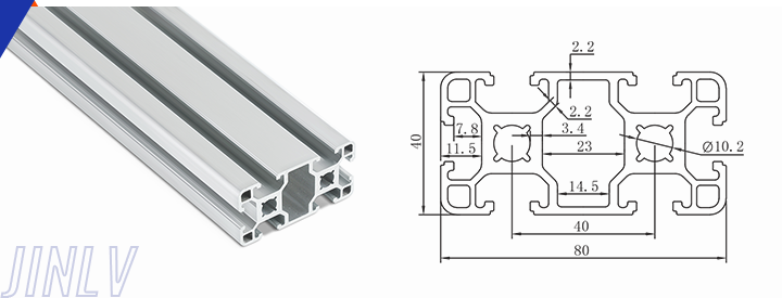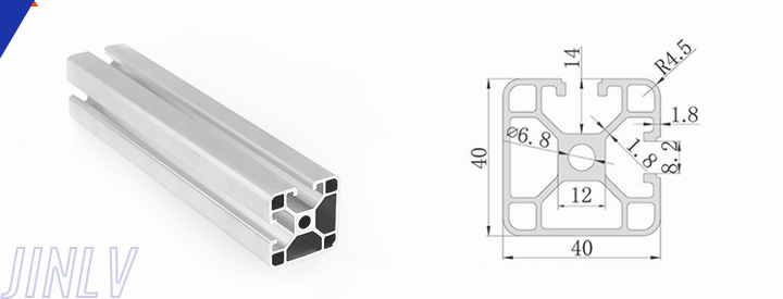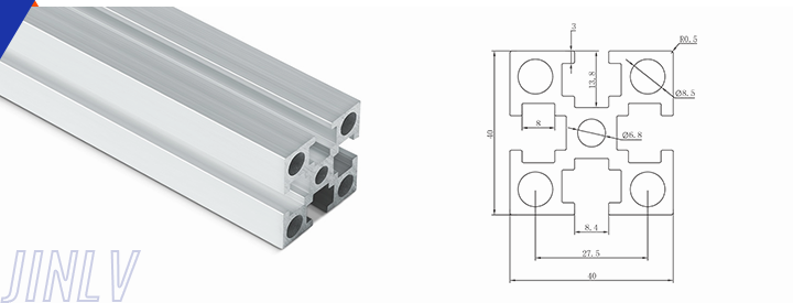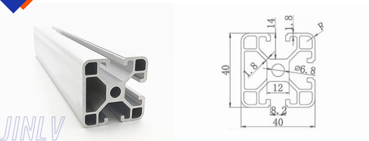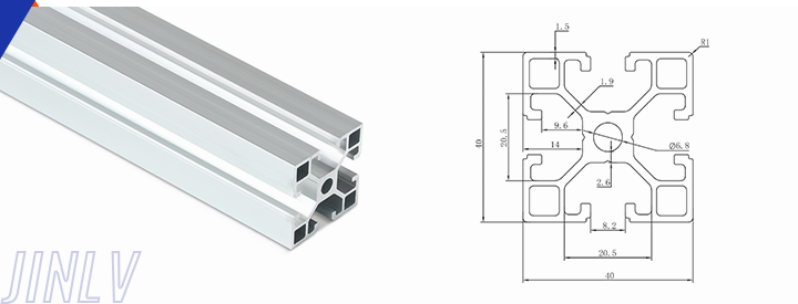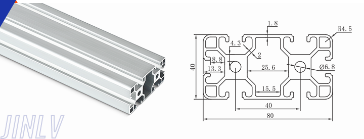 40 Series means the section height is 40mm,Jinlv offers another section have 40/80/ There are two kinds of slot 6mm and 8mm, normally 8mm slot is suitable for frame structure with high stress and strength. The shape is round corner transition and the surface is treated by positive oxidation,Beautiful and corrosion.It’s usually use M8X20 bolt Spring faster and Spring faster for inside connection. It’s one of profiles which is most widely used in industrial framework.