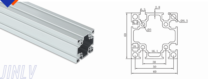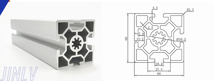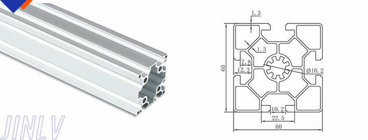 60 series means the section size is 60mm, Jinlv offers 6060,6090 and 50100, with 6mm 8mm and 10mm slot.