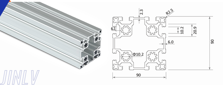 90 series means the section size is 90mm,Jinlv offers 9090 with 10mm slot.