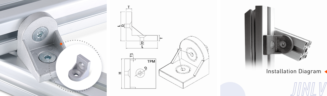 It is used for connecting two profiles which are not perpendicular to each other. The connecting bolt and nut block shall be provided separately.
