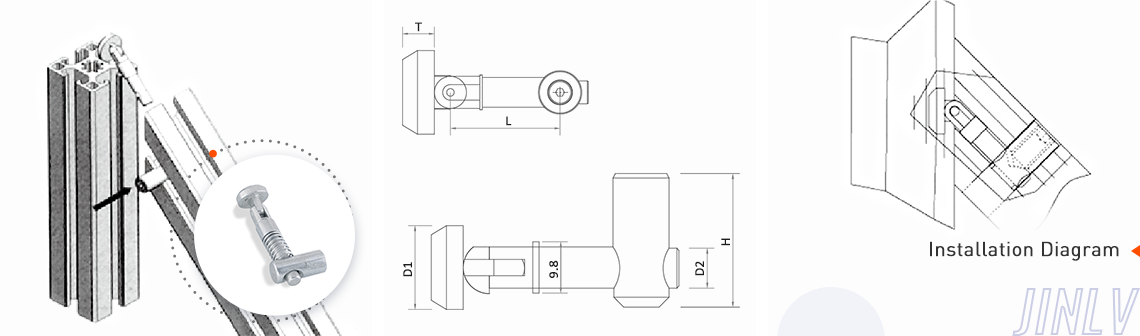 Use for two profiles non-90 angel connect, it is hidden inside the slot when installation, please pay attention how it is connected.