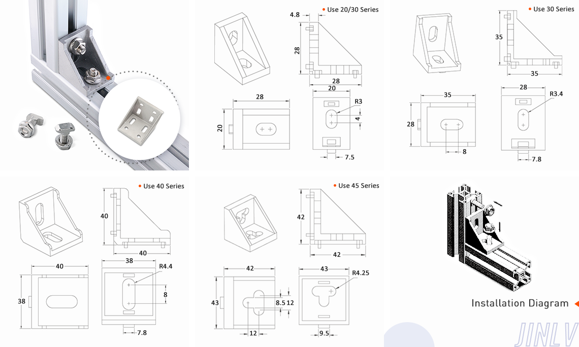 It is used to strengthen the support force of the connecting profile point, also can be used as the connection mode of the profile to be moved.T bolts and nuts for connection needs additional provide.