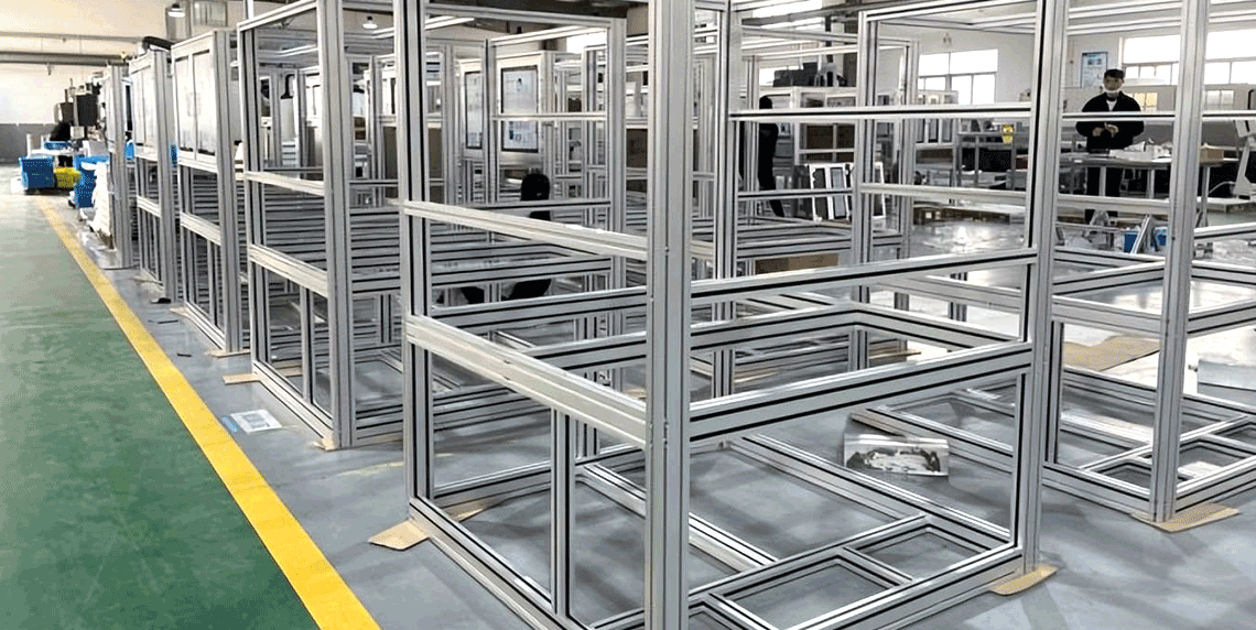 At present, there are many aluminum profile frames in the factory. Its advantages are light weight, corrosion resistance, easy cleaning, easy assembly and disassembly. It only needs to be connected with professional accessories, loved by all workshops. The roads are also more extensive. According to the specific requirements, in the dynamic, machine around, workshop warehouse and other places flexible customization, to meet the needs of different customers.