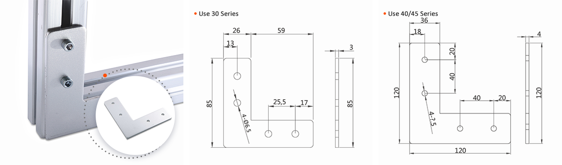 Used for profile right-angle external connection, no drilling, high strength connection, high-tech materials, military technology.